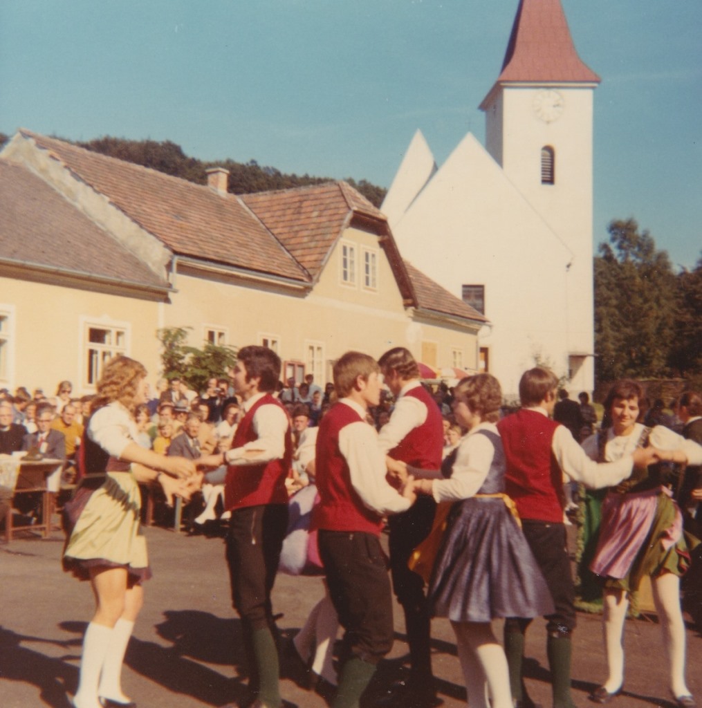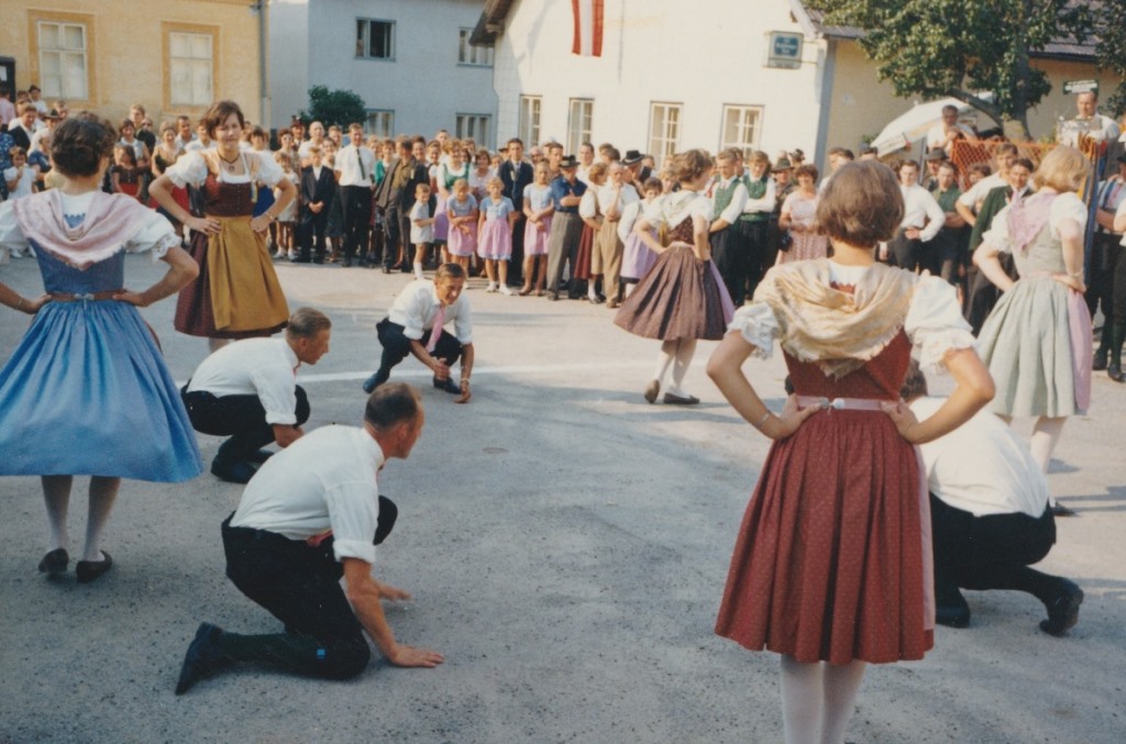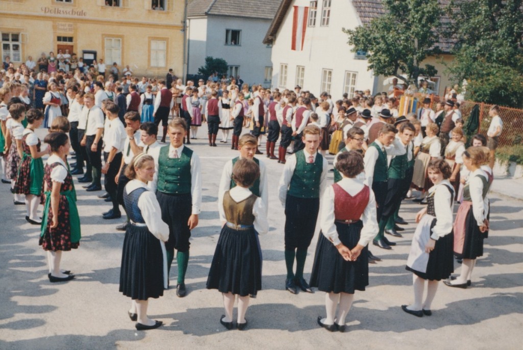 Veranstaltet vom Heimatverein “ D‘ lustigen Holzhackerbuam „. Es waren Gastgruppen aus Eichgraben, Neulengbach, Totzenbach und Michelbach nach Stössing gekommen, um einen gemütlichen Nachmittag zu erleben. Eingeleitet wurde das Fest durch einen Auftanz, an dem sich alle anwesenden Trachtenträger beteiligten. Dechant Prohaska hielt die Festansprache. Durch das gesamte Programm führte Obmann Josef Stadelmann. Die einzelnen Trachtengruppen verschönerten durch Ihre Tanzeinlagen das Programm.